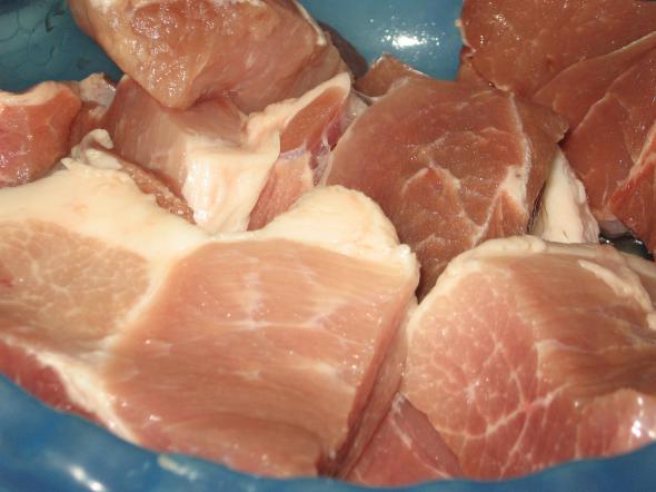 Мясо нарезали крупно, чтоб чувствовался кусок.