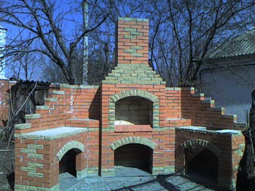 В нашей семье такая методика апробирована годами. Один такой камин у нас на даче отлично функционирует уже более 8 лет. Мы там и шашлыки жарим, и ветки с листьями жжем… Со всеми функциями строение справляется отлично. Мысль по поводу мойки и разделочного стола развивали уже дома – оказалось весьма полезно. Теперь не приходится бегать в дом за каждой мелочью, ведь можно прямо на месте все помыть, порезать, приготовить. Место под столешницей избавило от необходимости иметь сарайчик для дров – они под столешницей хранятся в сухости и при отличной вентиляции.