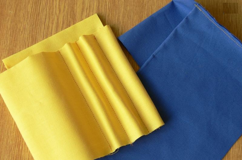 8. Из холста сошьем подвесные карманы. Они состоят из задней стороны (приб.16х32 см) и нескольких маленьких кармашков на передней стороне (24х28 см). Заднюю сторону сложим пополам, так получится квадрат с петлей для подвешивания на планку. Длинную сторону кармашков тоже сложим пополам, приложим к задней стороне и прошьем по бокам. Затем вывернем на лицевую сторону.