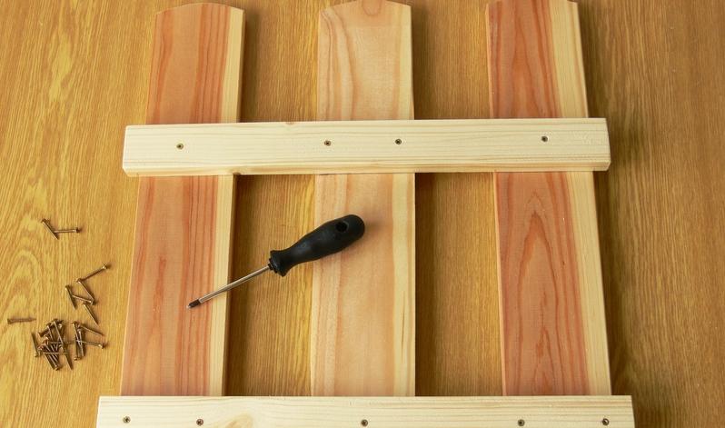 4. Планки прикрепим винтами длиной 2,5 см. Винты расположим так, чтобы чередовались 1 и 2. Если нижняя планка прикреплена 1 винтом, то верхняя - 2, чтобы обеспечили стабильность.