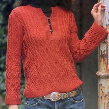 Немного старомодная модель, но я всё равно решила её добавить, ведь мой блог не только юные модницы читают))) А такой свитер отлично подойдёт для зрелой стройной женщины — в меру строгий и одновременно элегантный. Лёгкий меланж и шишечки в узоре придают небольшую кокетливость образу.