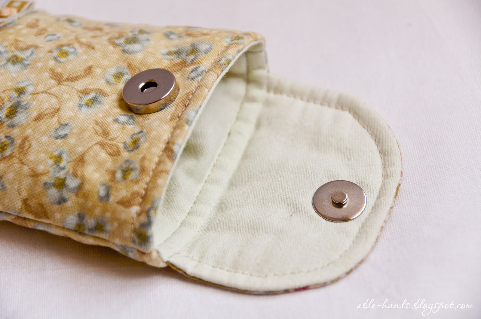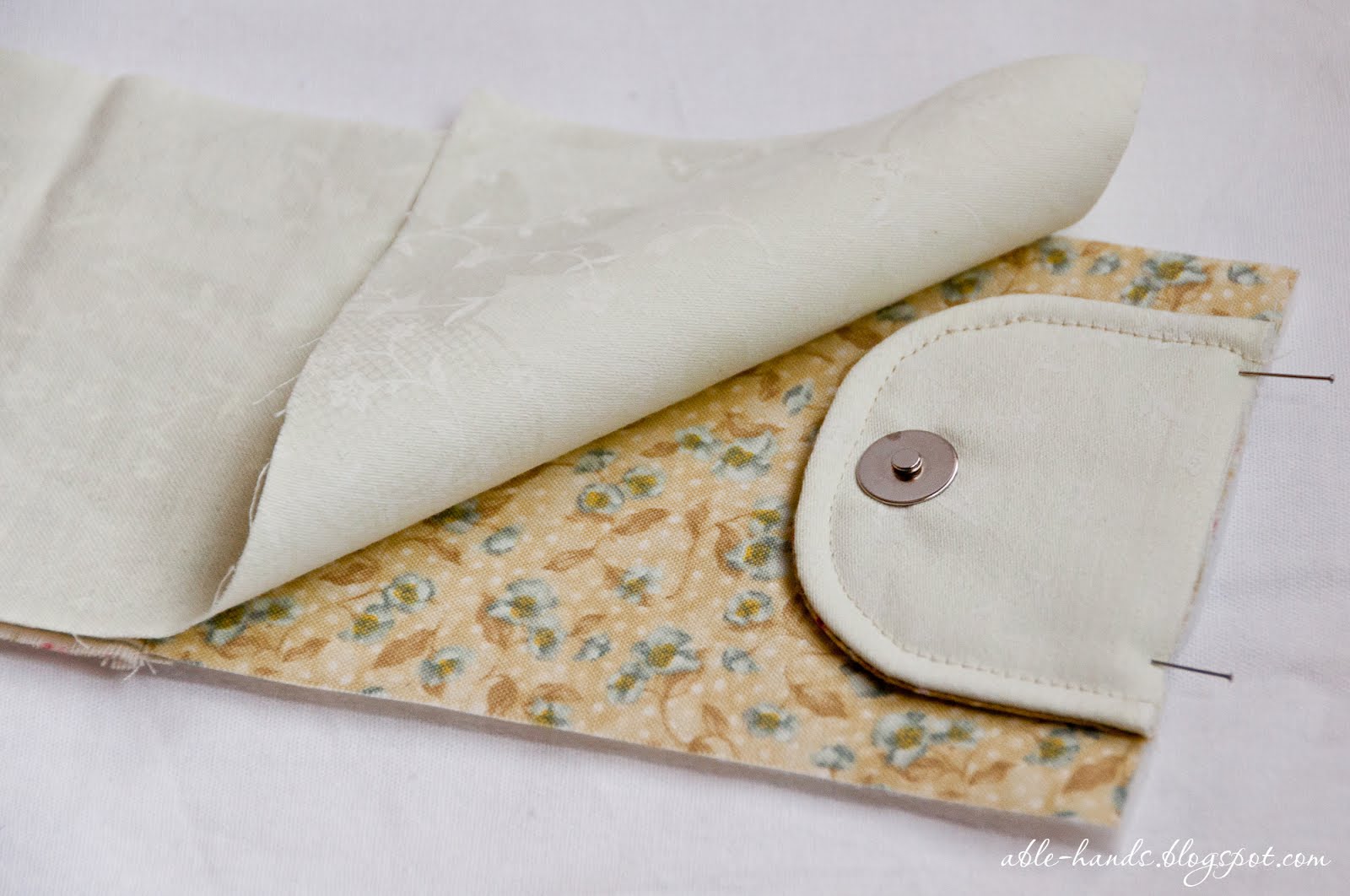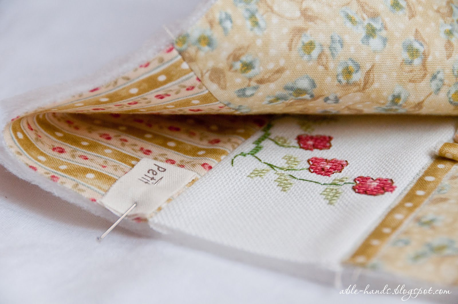 Для изготовления чехла нужно выкроить из ткани прямоугольник размером 11*38 см для лицевой стороны (у меня этот прямоугольник состоит из: двух прямоугольников 15*11 и 10*11 см из одной ткани, одного прямоугольника 12*11 см из другой ткани и вышитого мотива 7*11 см), такой же по размеру прямоугольник для подкладки и две детали для клапана размером 7*10 см (одна - из лицевой ткани, вторая - из подкладочной). Все размеры указаны с учетом припусков на швы. Еще понадобится синтепон или флизелин и магнитная застежка. Я использовала клеевой объемный флизелин, им уплотняла прямоугольник для лицевой стороны и одну из деталей клапана.