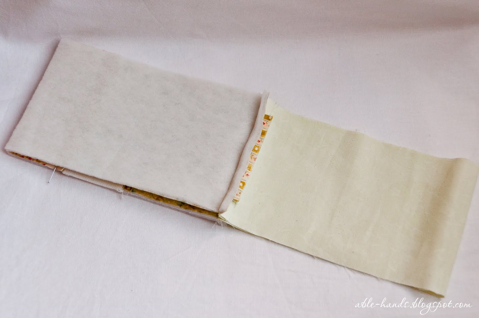 Прокладываем строчки вдоль длинных сторон, оставив в подкладке незашитым небольшой участок (на этом этапе можно сделать уголки тем способом, который я описывала в