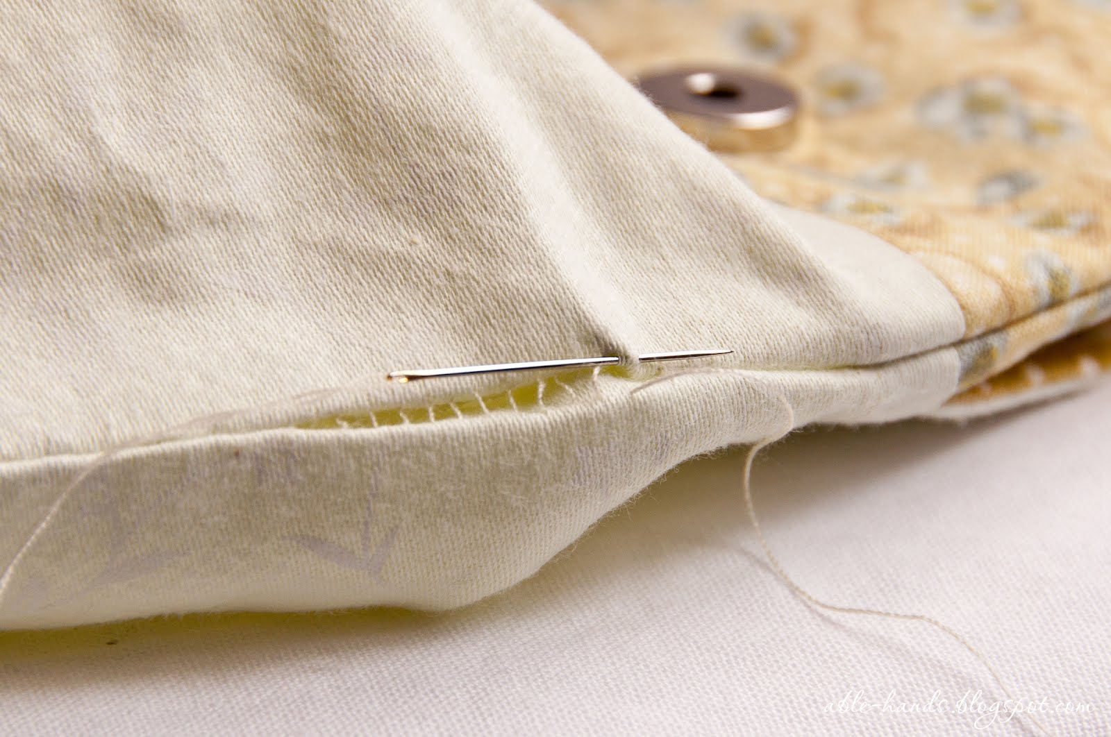 Намечаем место для застежки и устанавливаем ее. Зашиваем отверстие для выворачивания потайным швом.