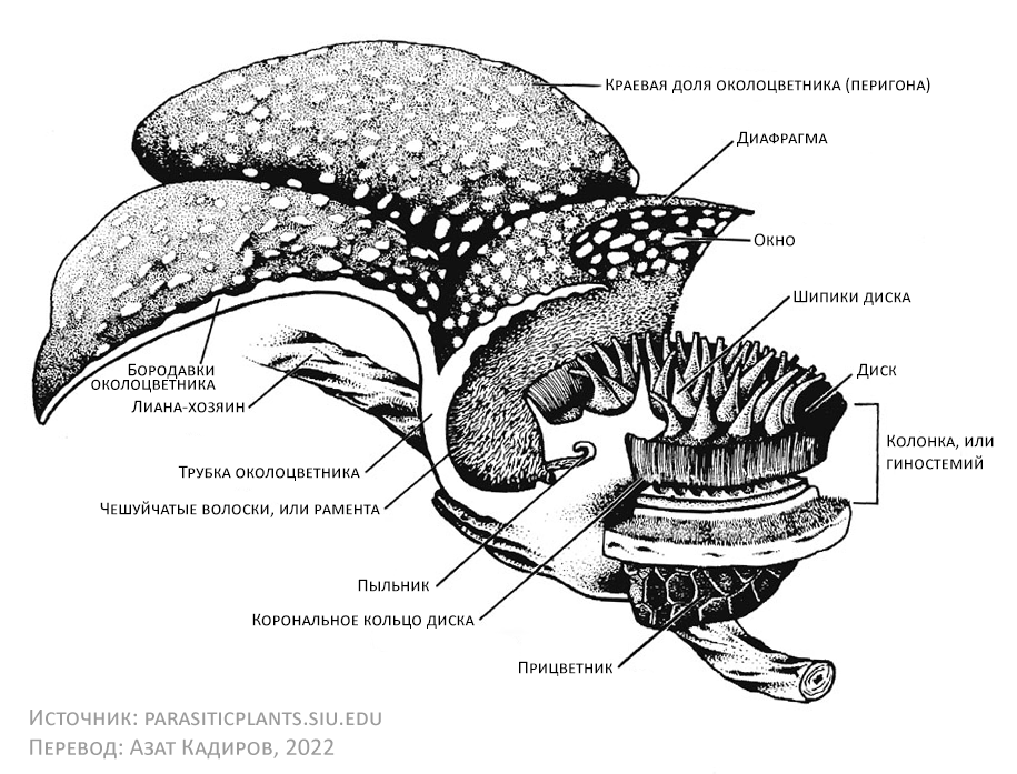 Различные формы раменты, чешуйчатых волосков, из трубок околоцветника раффлезии. Meijer W (1997) Rafflesiaceae. Flora Males 1:1–42