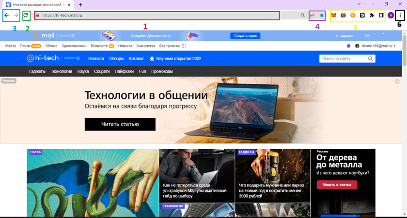 Адресная строка (омнибокс), специальное поле в верхней части обозревателя, в которой вводится адрес искомых веб-сайтов или поисковый запрос. Именно с нее все и начинается. После ввода данных пользователем браузер сначала передает запрос на веб-сервер, где происходит его обработка и формирование ответа в виде наглядной информации для отображения на экране компьютера.Кнопка «Остановить/перезагрузить» веб-страницу. Данная кнопка позволяет быстро актуализировать текущие данные или перезагрузить страницу, если она отображается с ошибками. Например, если «поехала» верстка, элементы страницы не отвечают на нажатия или не загрузились некоторые изображения. После нажатия кнопки обновления браузер удаляет из своего кэша элементы текущей страницы и загружает их заново. Для быстрого обновления также лучше воспользоваться горячими клавишами CTRL+F5. На смартфоне для быстрого обновления достаточно потянуть страницу вниз, а затем отпустить.Возврат к предыдущей/переход к последующей веб-странице (←/→). Кнопка «Назад» позволяет пользователю повторно загружать те страницы, которые он уже видел раньше. Кнопка вперед, соответственно, возвращает пользователя вперед до последней просмотренной им страницы.Кнопки «Поделиться» и «Добавить в закладки». Закладки позволяют сохранять активные веб-страницы для более быстрого доступа в дальнейшем. На деле все сохраненные закладки хранятся на специальной панели, которая, как правило, находится ниже адресной строки.Меню дополнений и расширений. Чтобы расширить функциональность вашего обозревателя, можно установить расширения из магазина расширений. В этом плане расширения очень похожи на приложения, которые вы устанавливаете на свой смартфон. Расширения помогут вам избавиться от надоедливой рекламы, без труда скачать видео из youtube, быстро перевести текст с другого языка, управлять своим почтовым ящиком и многое другое.Меню настроек и дополнительных инструментов. Здесь находятся основные элементы для управления браузером. Меню настроек позволяет при необходимости быстро изменять масштаб страниц, просмотреть историю посещения, перейти в загрузки или осуществлять поиск по странице.Поисковые системы. Как выбрать и установить поисковую систему по умолчанию