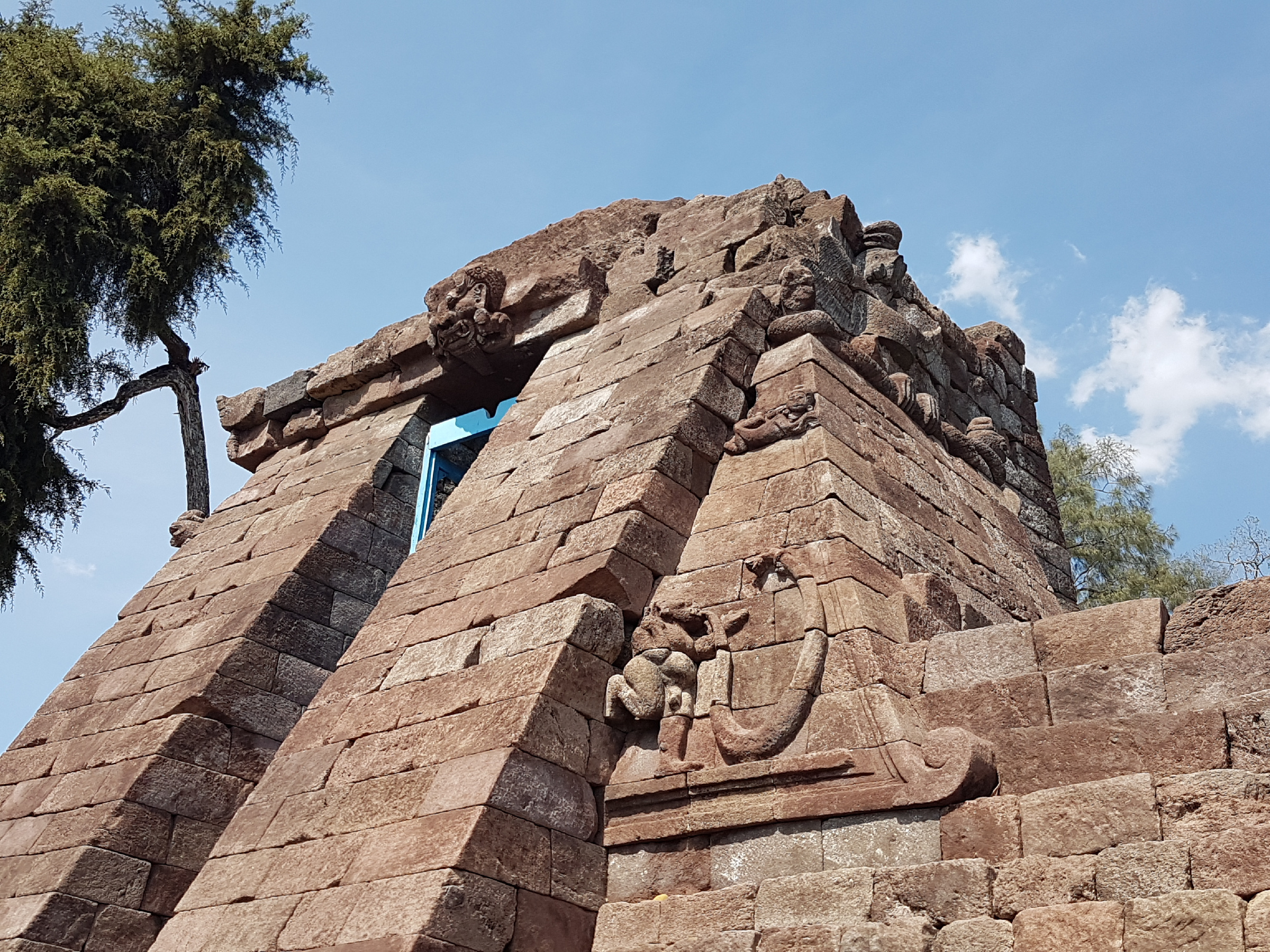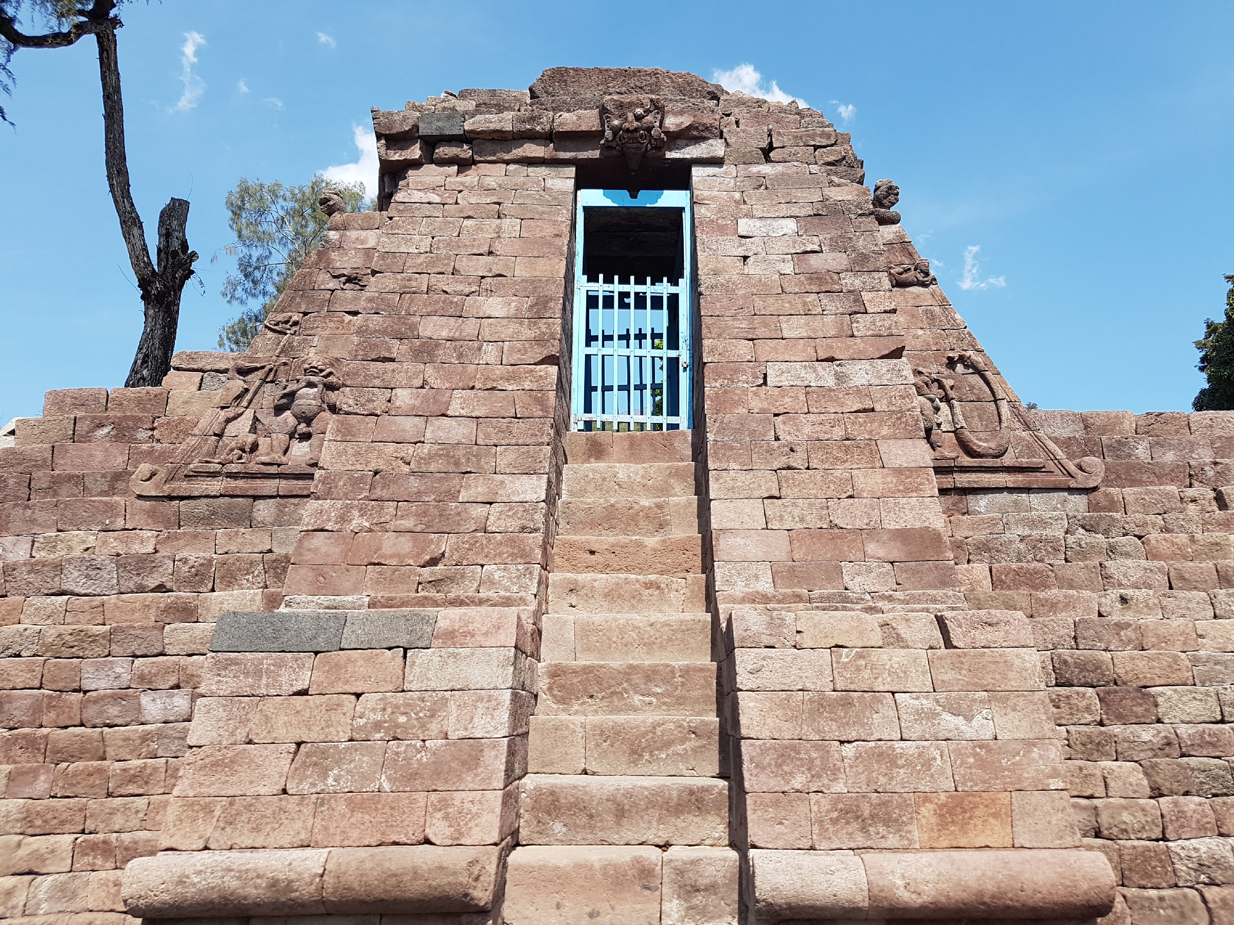 Храм Суку выложен из андезита и поэтому имеет красноватый оттенок.