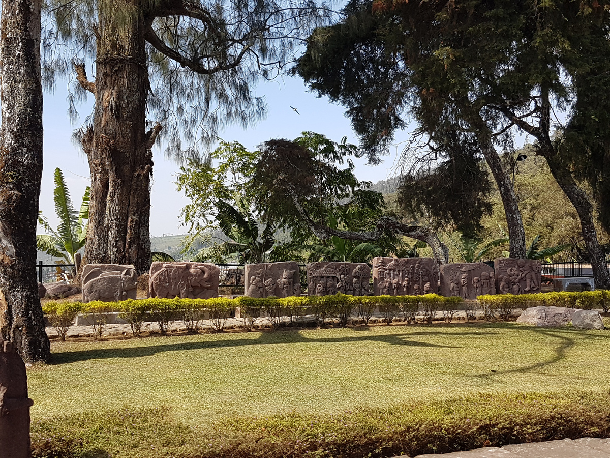 Помимо этого, на территории храма стоят несколько статуй и барельефов кабанов и слонов с сёдлами.