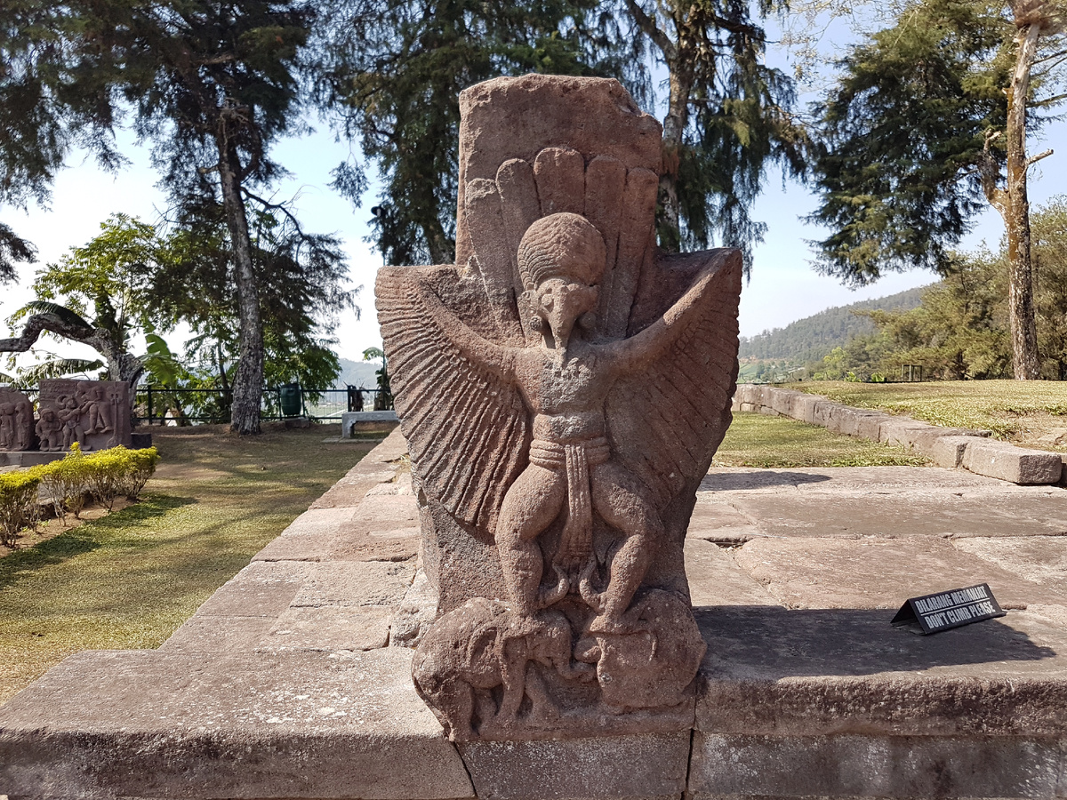 Помимо барельефов, справа находятся две статуи Гаруды из легенды о поиске амриты (воды жизни) из книги Адипарва, первой книги Махабхараты. На хвосте Гаруды имеется хронограмма, обозначающая 1363 г. Сакской эры (1441 г. н.э.).