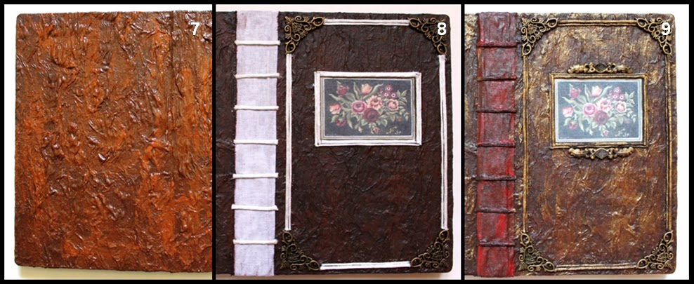 7) Покрываем нашу обложку акриловыми красками, миксуя коричневые цвета.