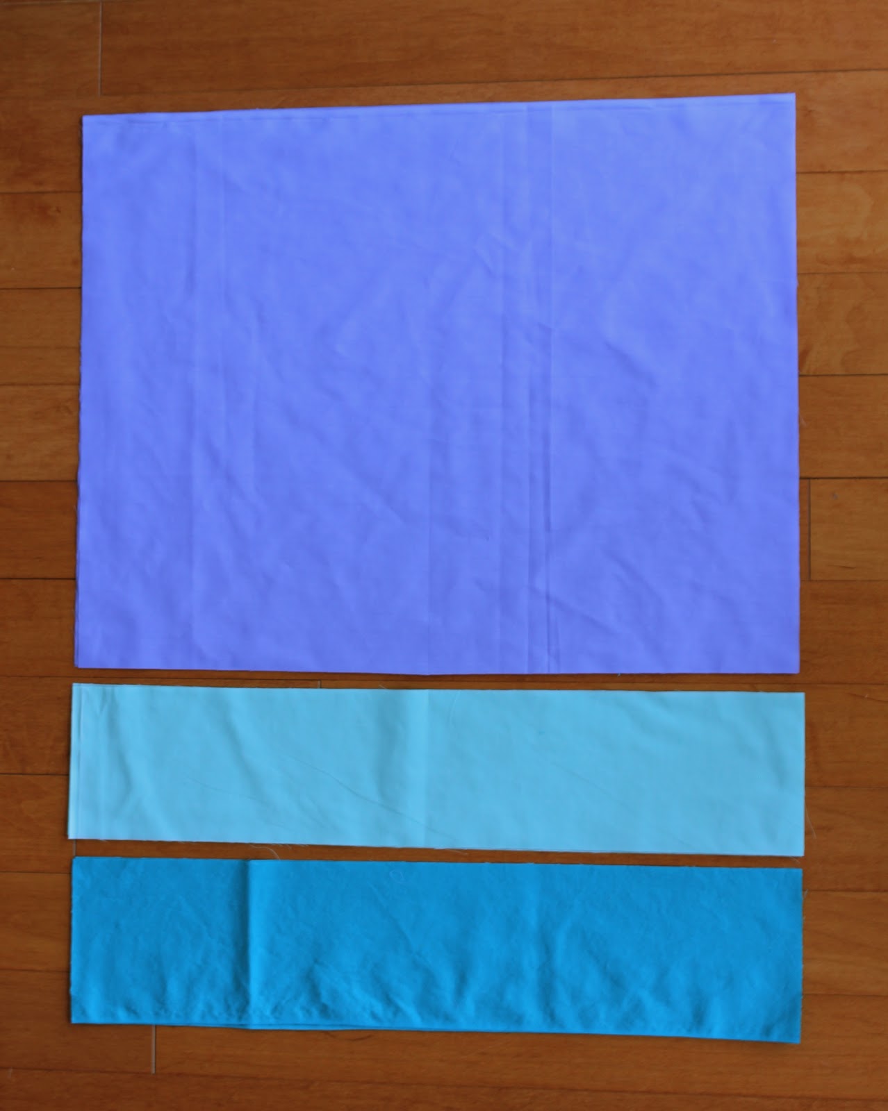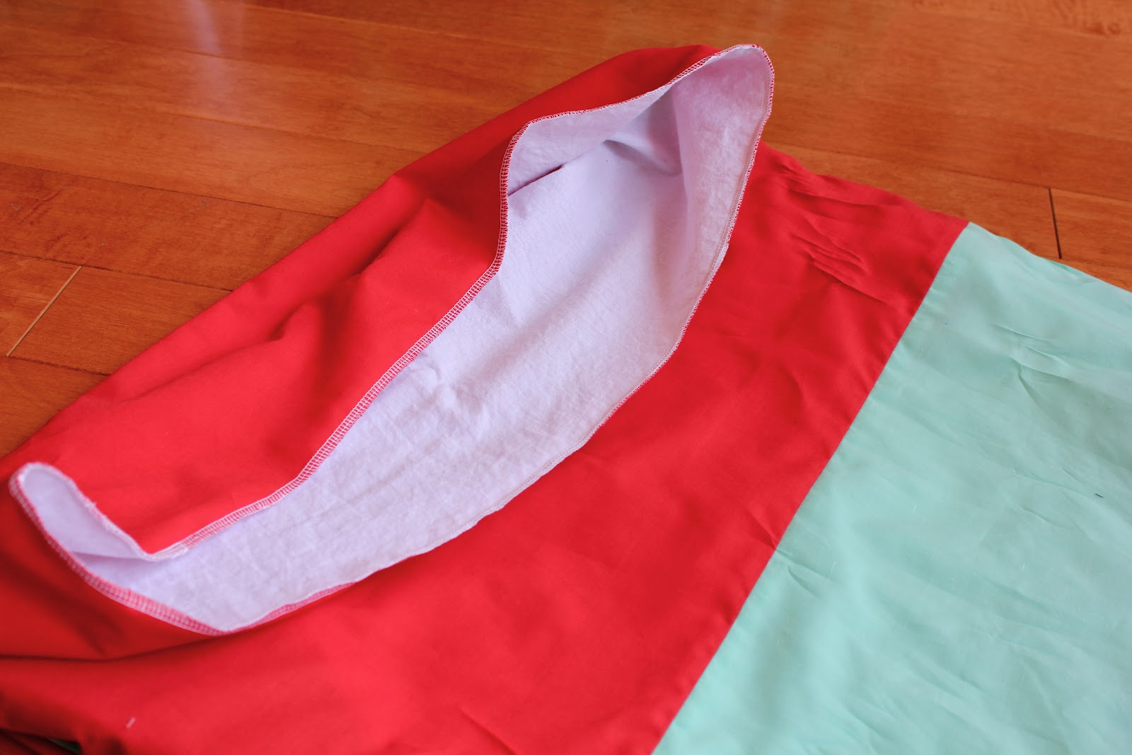 К сожалению я забыл сфотографировать это, но, для двухцветной я использовал 21 "моей основной цвет ткани (красный / темно-синий) и 8" из облицовку (мята).