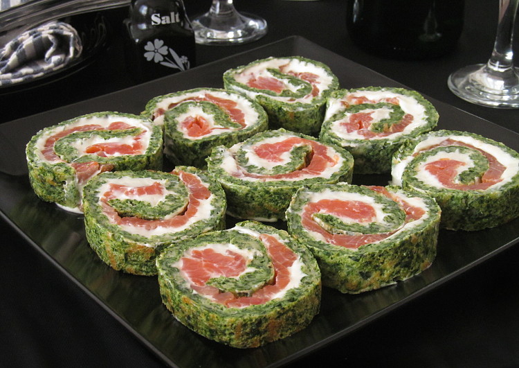 Этот восхитительный рулет однозначно станет ярким украшением любого праздничного стола! Замечательная альтернатива бутербродам с красной рыбой, и даже намного вкуснее. Выглядит эффектно, на вкус великолепно, да и готовится совсем не сложно. Сочный шпинатный бисквит, нежный творожный сыр и соленая рыбка - вместе просто "взрывное" сочетание вкусов! Однозначно рекомендую приготовить и попробовать!! Угощайтесь на здоровье!!!
