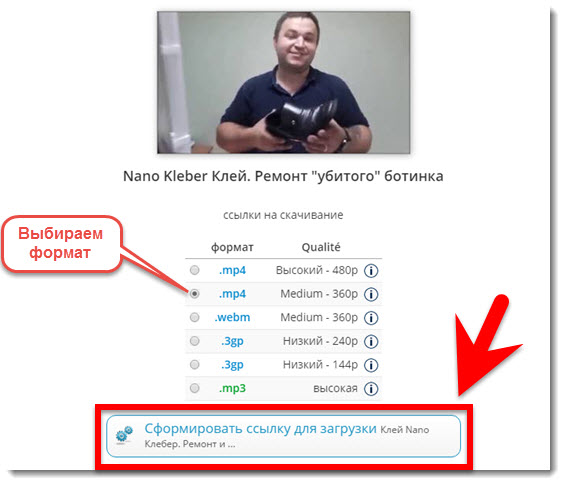 Скачать видео можно в разных форматах, на выбор. Плюс, можно скачать только звуковую дорожку в формате МП-3 (это вам пригодиться, например, когда нужно скачать музыку из клипа, не скачивая сам клип).