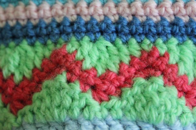 So this is where I am up to at the moment, on the 3rd row of the chevron pattern, next I am going to use the green again to fill in the dips of the chevrons and make it flat again.