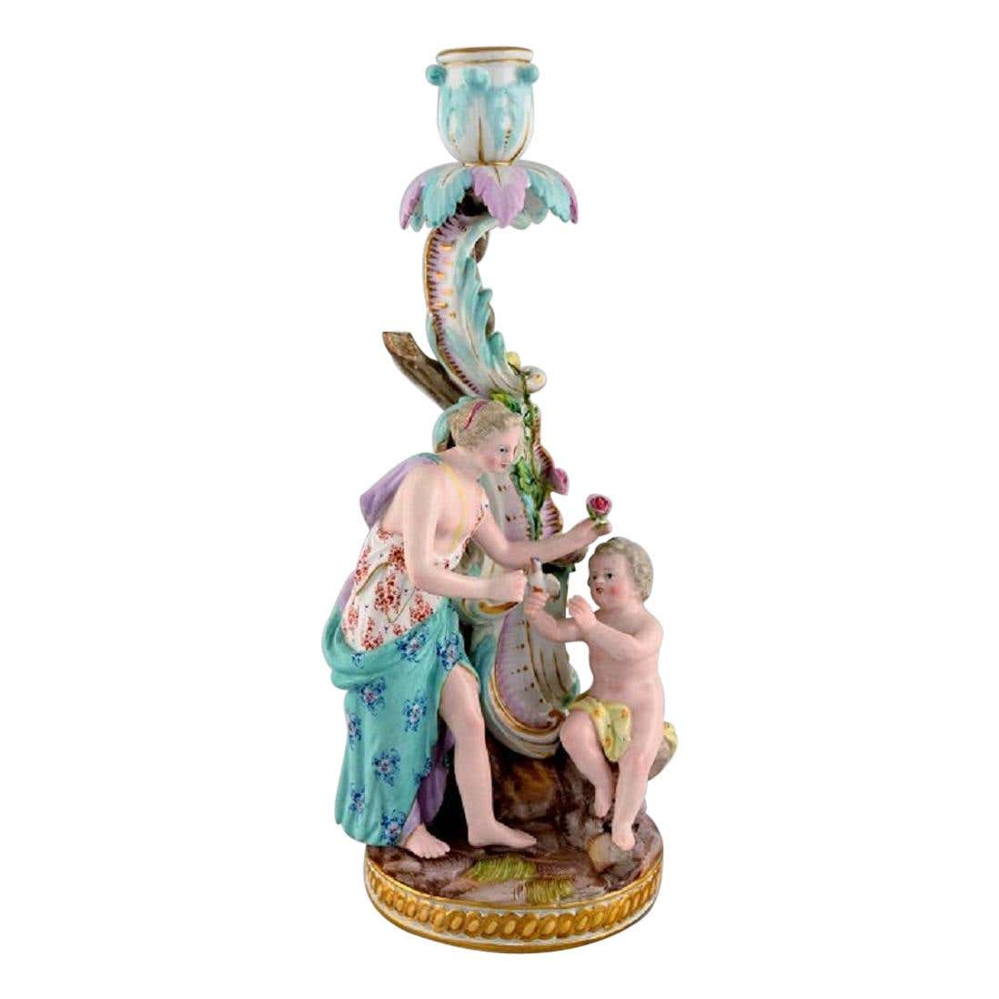 Antique Meissen Candlestick in Hand-Painted Porcelain, Late 19th Century
