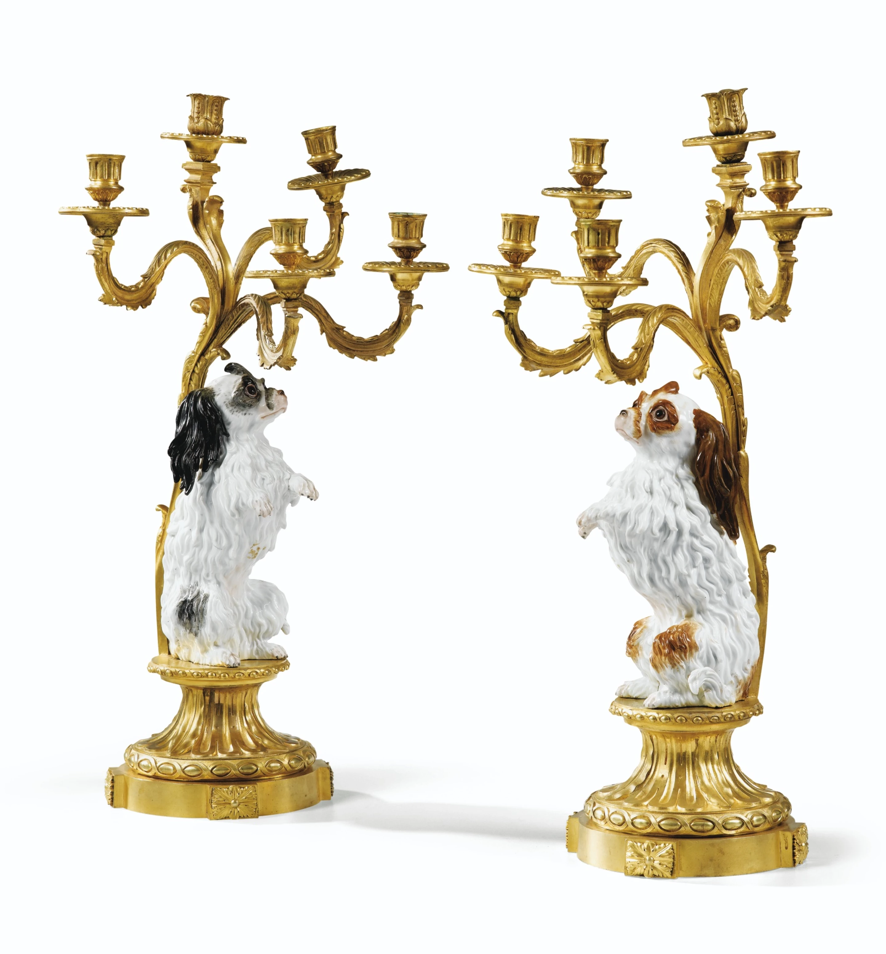 A PAIR OF LOUIS XVI ORMOLU-MOUNTED JAPANESE PORCELAIN THREE-BRANCH CANDELABRA
