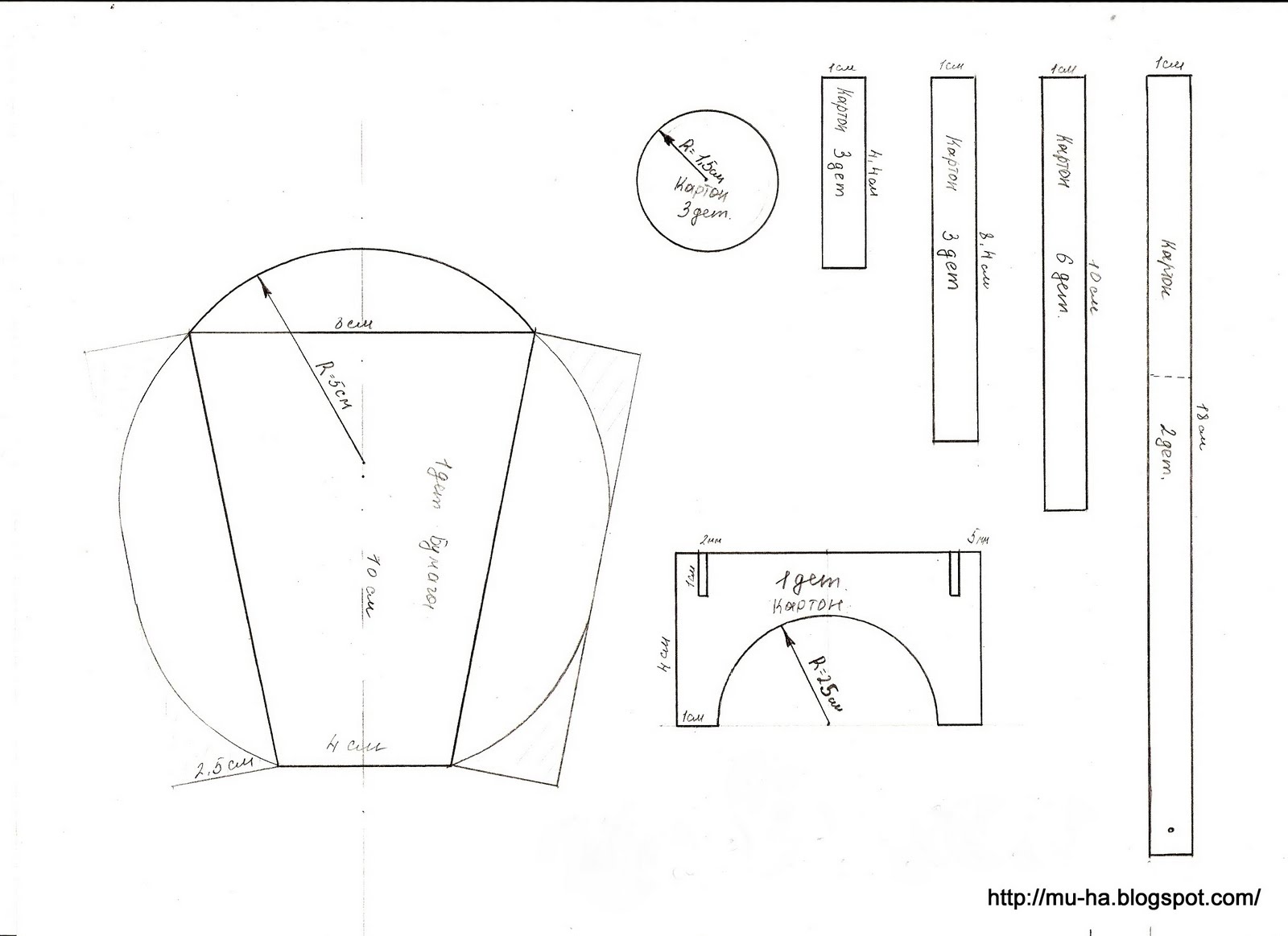 9.Теперь для того чтобы каркас поставит на основание приклеим полосочки шириной в 1 см к дугам тележки и с их помощью соберём всё воедино.
