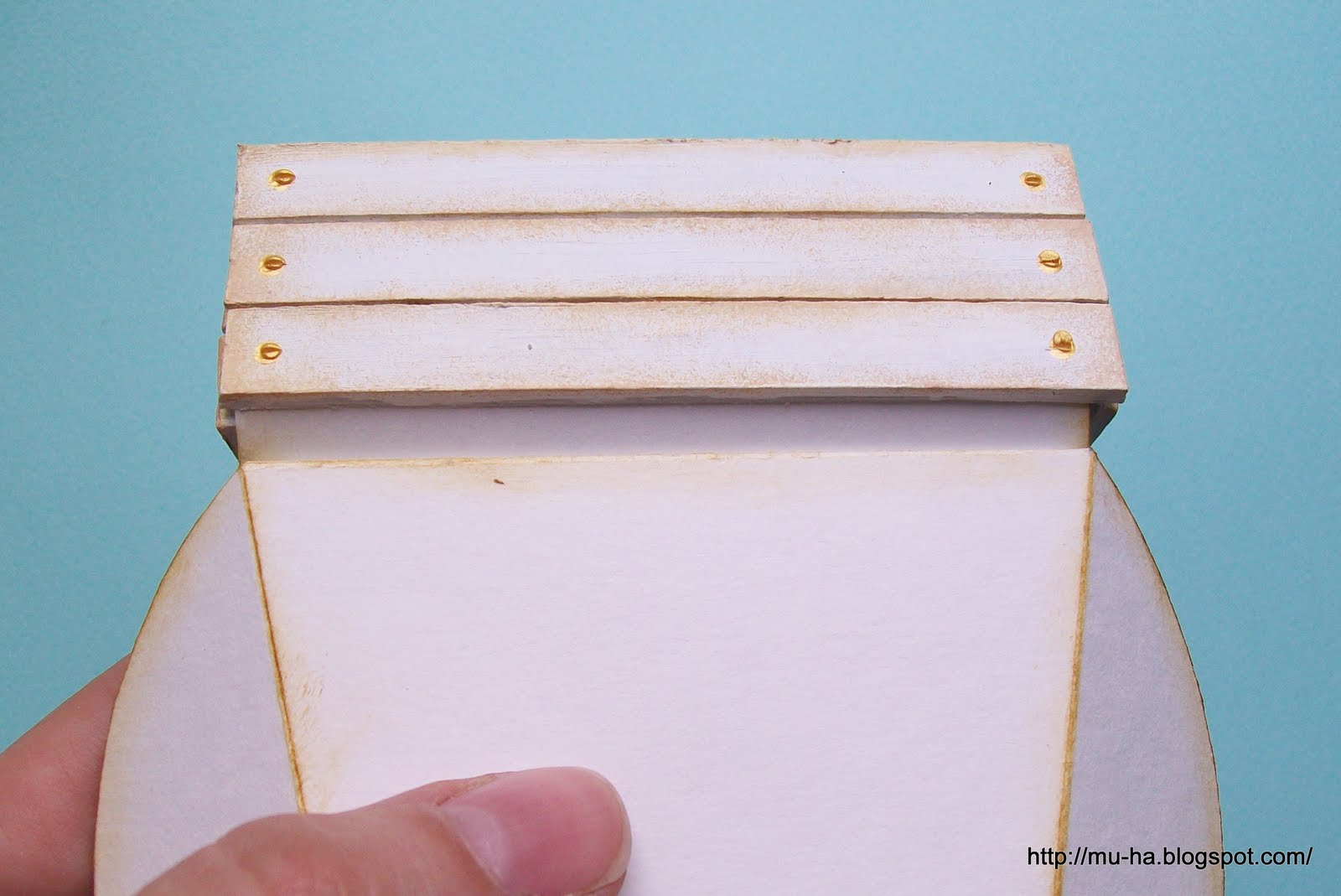 6.На дно тележки и на деталь крышки приклеиваем детали из скрап бумаги соответствующего размера.