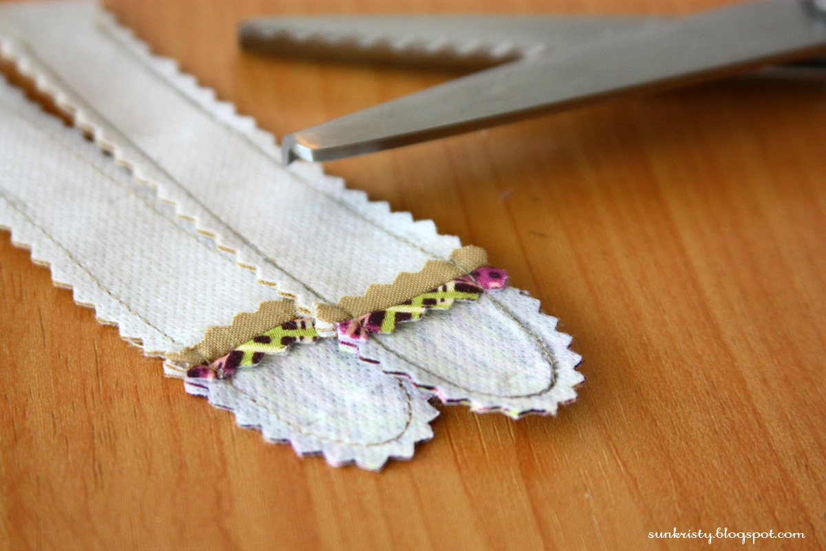 Прокладываем строчку, припуски обрезаем фигурными ножницами: