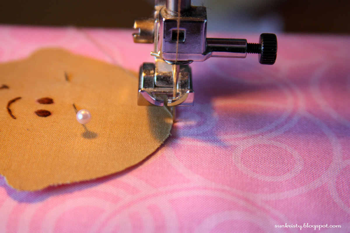 Детали прикалываем булавками к основе и настрачиваем. В основном я использую строчку зиг-заг. Изредка пользуюсь обычной строчкой (если деталь оооочень мелкая).