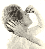 Используйте VG 16 и V 2: большим пальцем правой руки нажмите на точку VG 16 в центре над позвоночником в углублении у основания черепа. Большим и указательным пальцами левой руки нажмите на обе точки V 2. Наклоните голову назад и удерживайте давление одну-две минуты при глубоком дыхании.