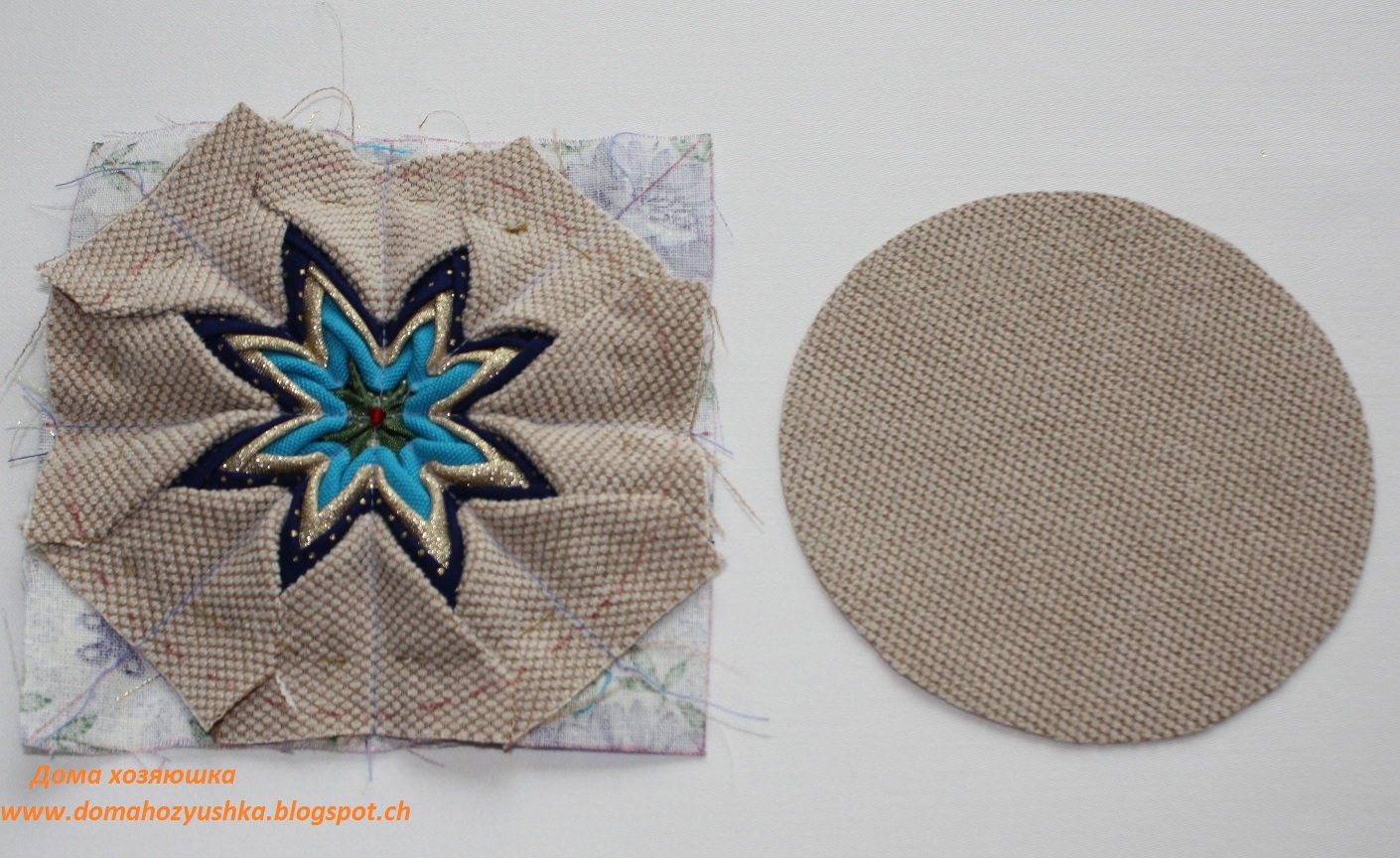 Есть два шикарных МК, как сделать звездочку, а мы ее уже превратим в цветочек;) В этом МК предложен вариант, как шить вручную без машинки. Но, у меня вручную совершенно не получалось и поэтому я пользовалась еще и этим МК.