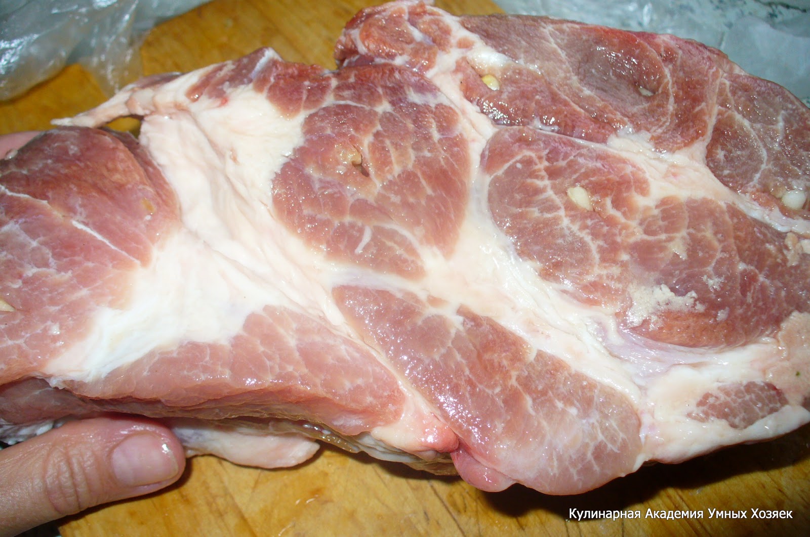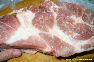 Итак, запеченную буженину извлеките из духовки, рукав аккуратно (не обожгитесь!) разрежьте
