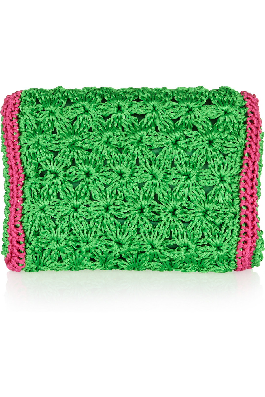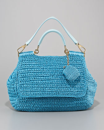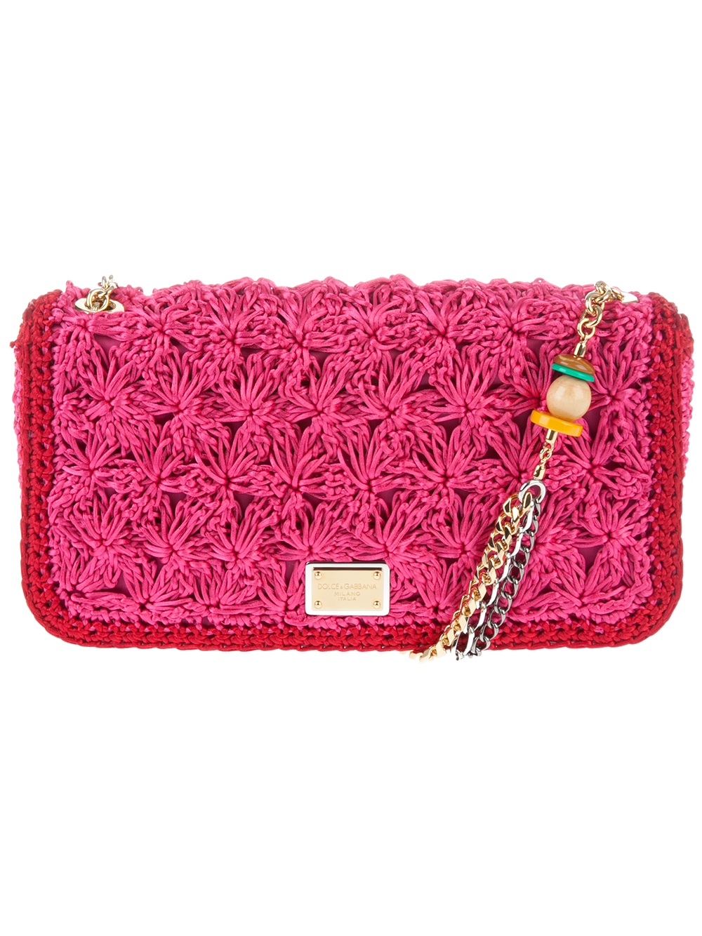 3. Crystal-trimmed crocheted raffia shoulder bag.