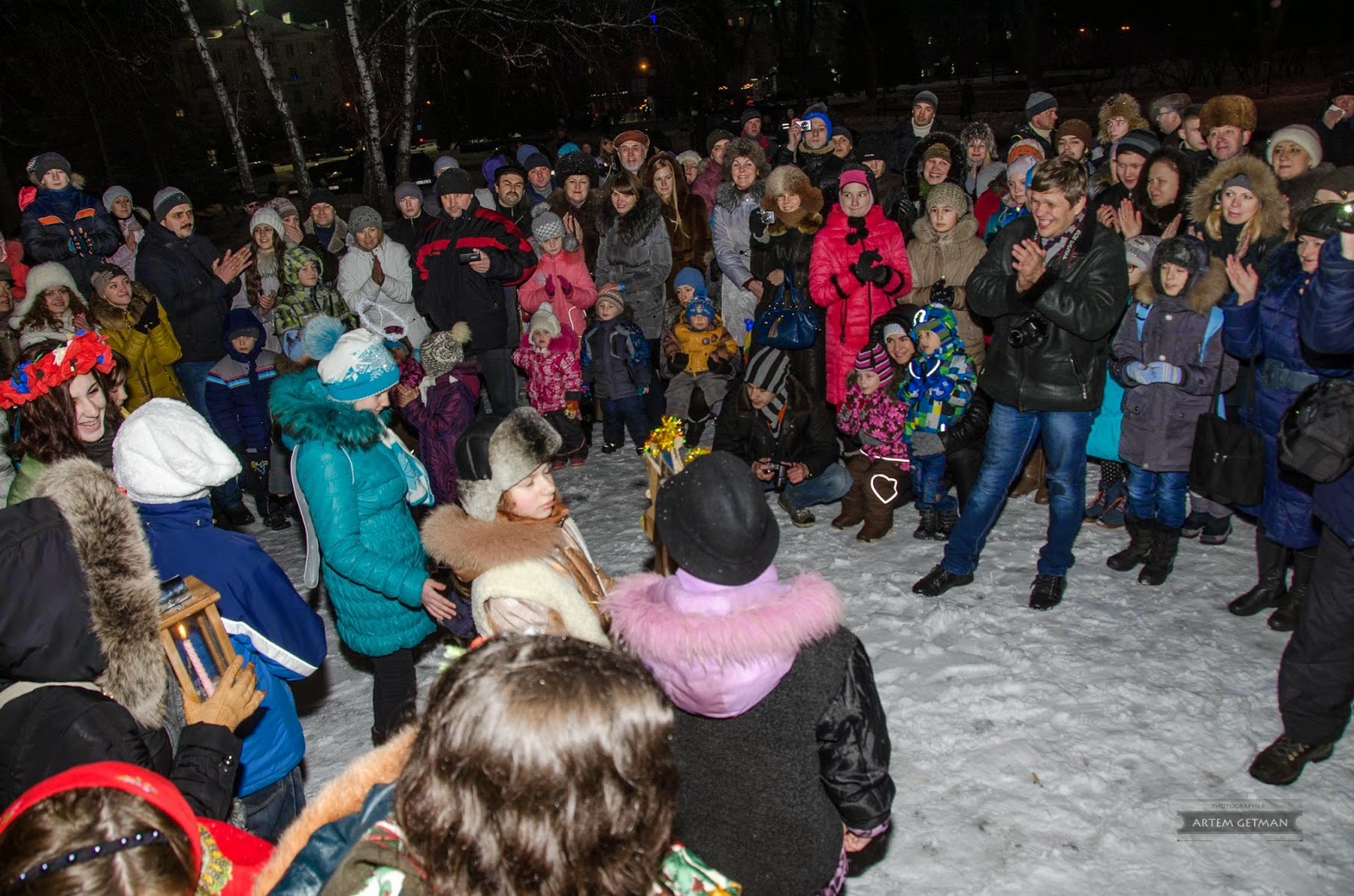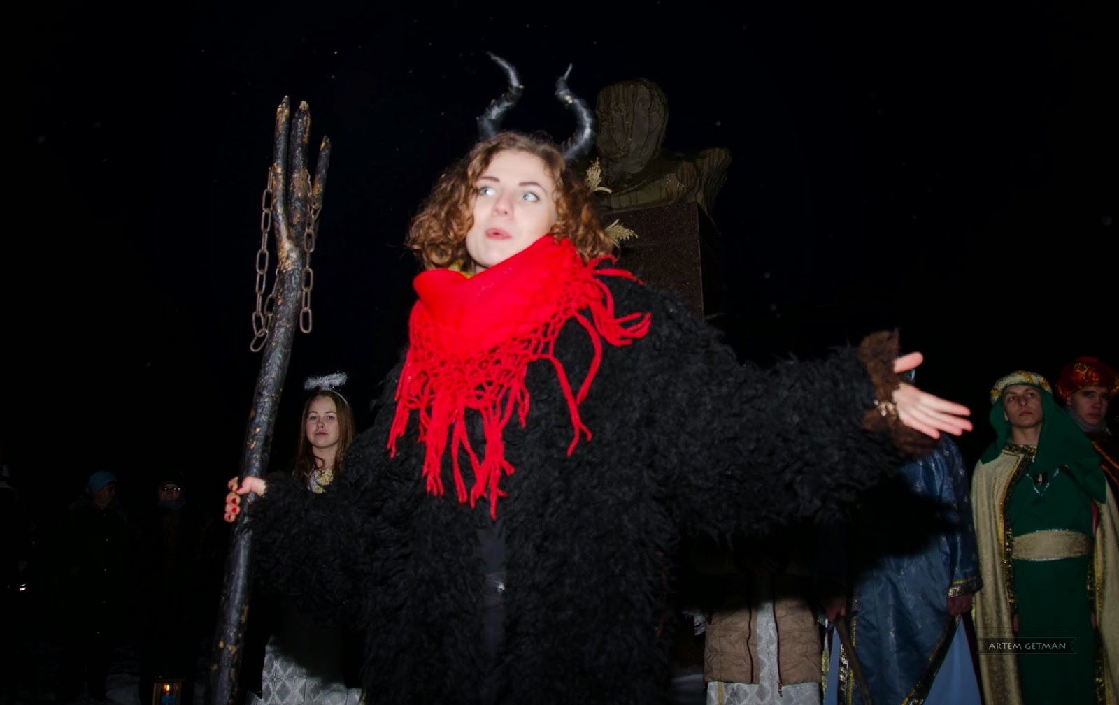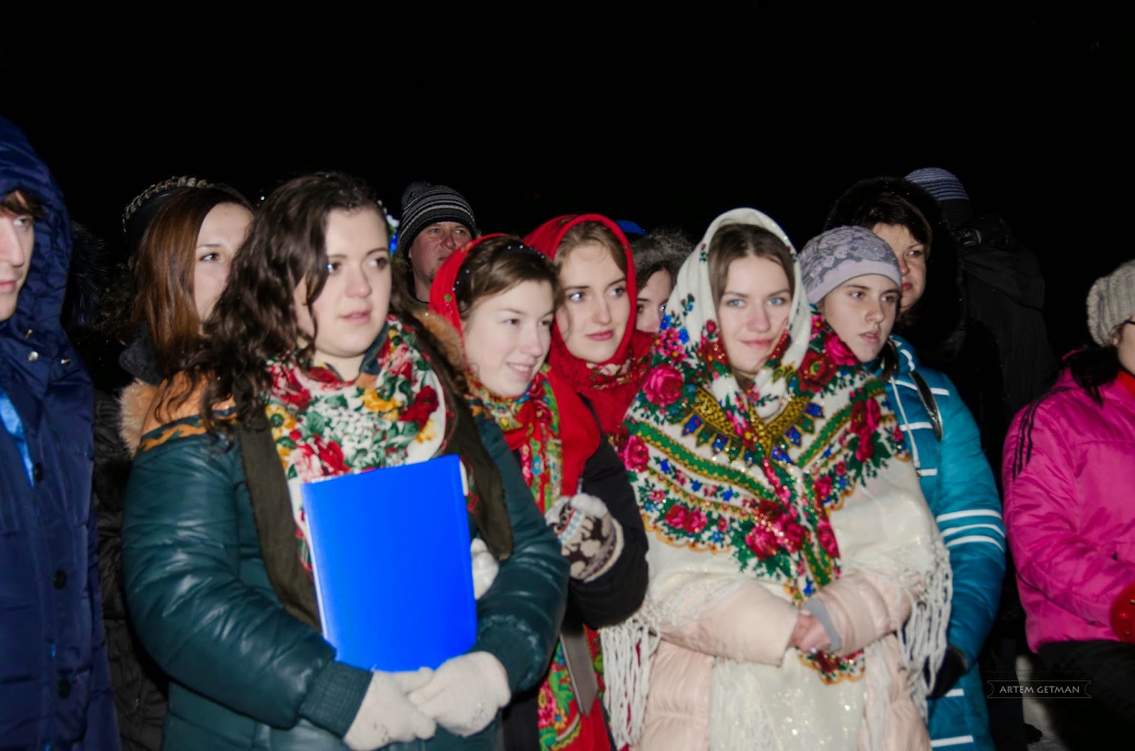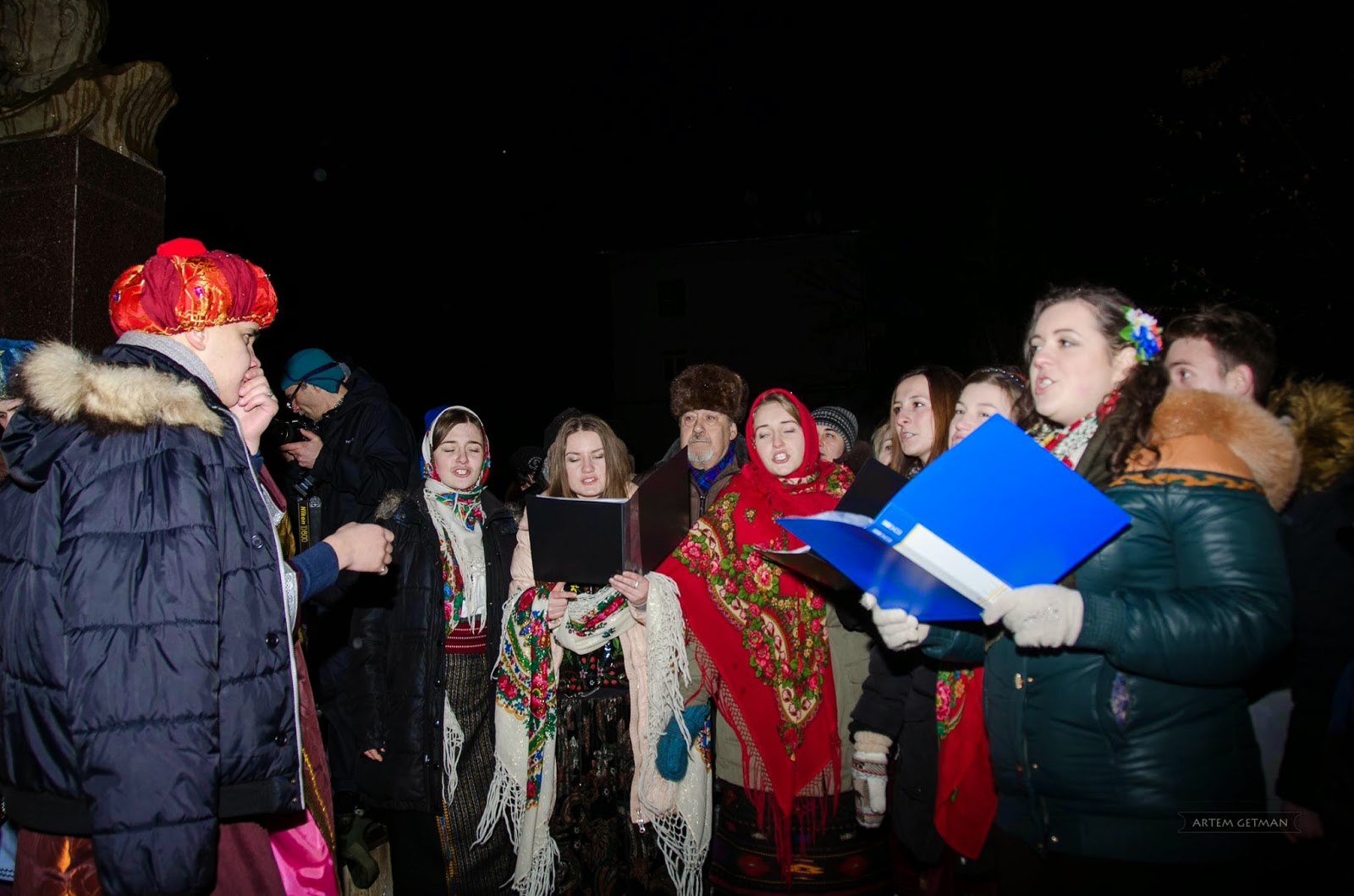 Вот опять посланцы "города Льва" на том же месте, в тот же час. Тема сегодняшнего выступления - традиционный западноукраинский рождественский вертеп, исполнять который традиционно приходят в гости. Сюжет с ряжеными и неизменной Вифлеемской звездой над головами испокон веку кочует по открыткам. Но содержание любительского мини-спектакля для нас, советских воспитанников, при этом остается за кадром. Здесь можно посмотреть, как это выглядит вживую.