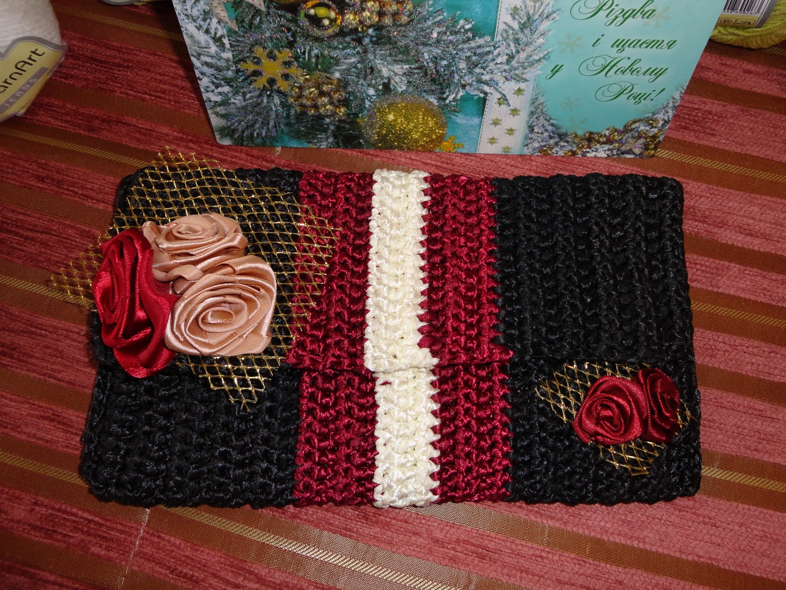 Я выиграла конфетку от Inna-dukinna http://dukinna-71.blogspot.com/ и хочу вам показать всю эту вкусняшку. Конфетка меня очень порадовала, там столько всего нужного: и ниточки, аж 10 моточков, и очень красивый набор для вышивки крестом, открыточка и мои любимая конфетка Рафаэлло. Ну, и самое главное вязаная косметичка, украшенная розочками из лент. У меня было столько положительных эмоций! Спасибо Инна!!!