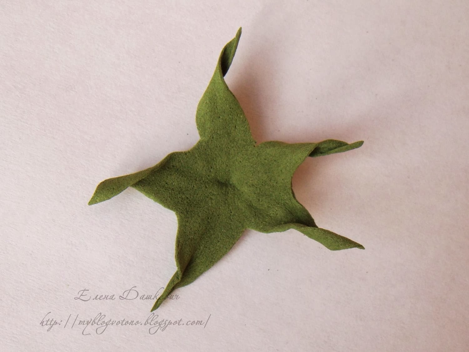 Сразу формируем и чашелистик: вырезаем в форме звезды, складываем листики вместе, скручиваем и аккуратненько разворачиваем.