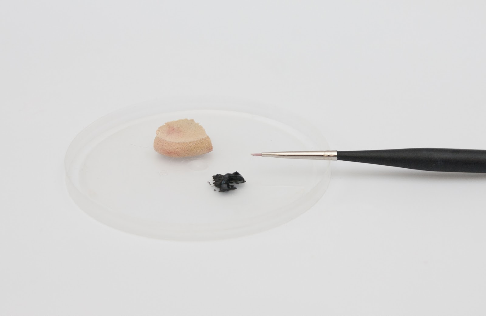 Маленький кусочек пластики формируем в шарик, лезвием режем на 2 части.