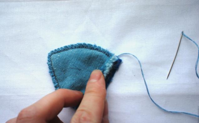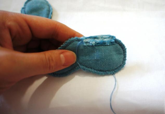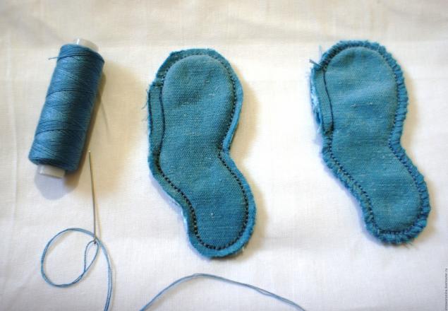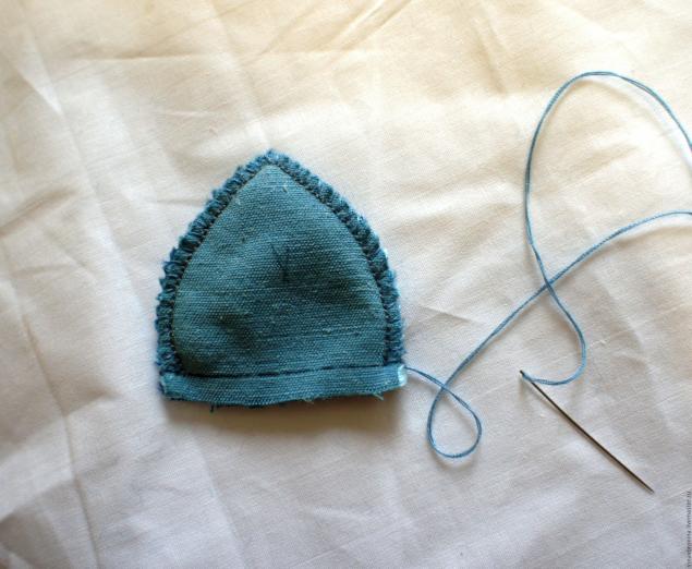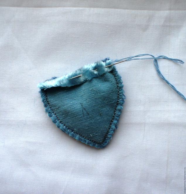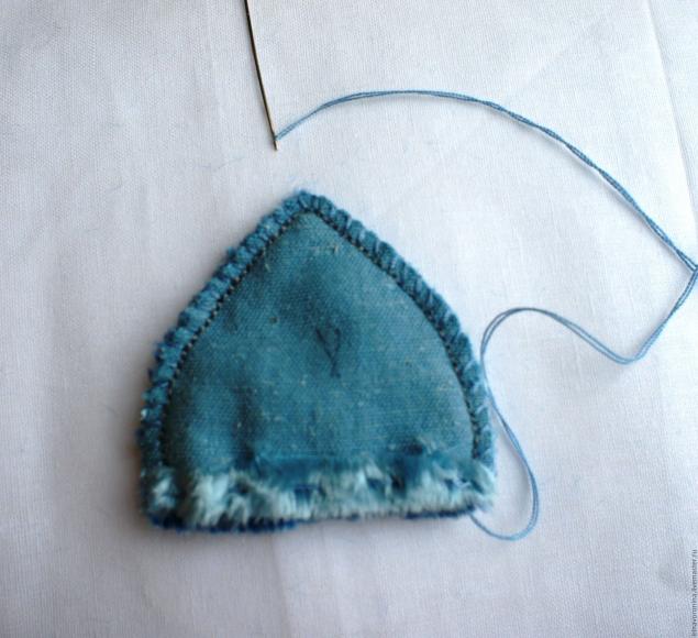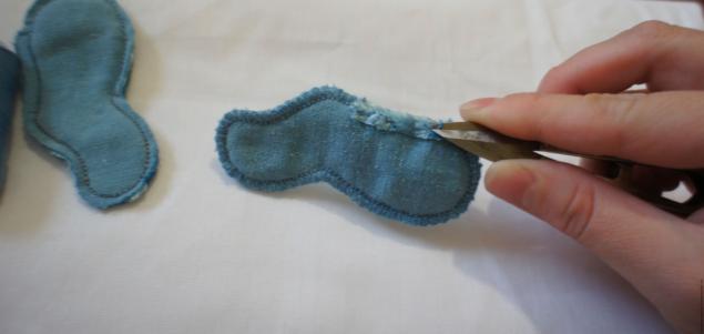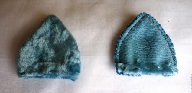 Итак, наша лапка. Сшитая по намеченному контуру, припуски обрезаны, далее по желанию можно обметать край. (Плюс обмётки в том, что если вдруг при обрезании припусков, Вы срезали лишнее, то после обмётки и после набивки ничего не случиться с припуском, он не поползет и дырочки не случиться)