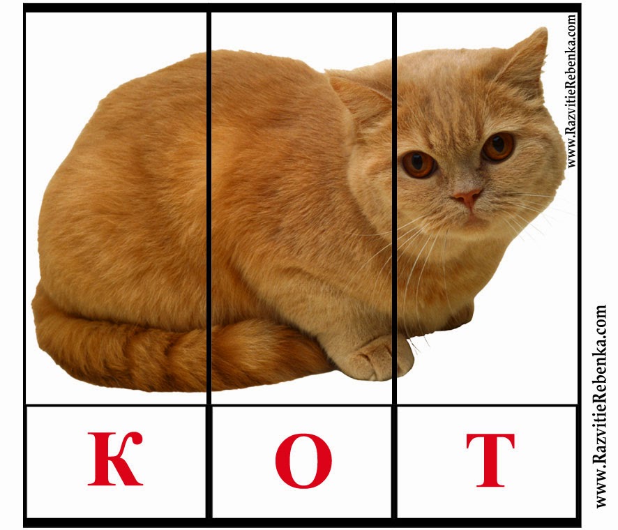 Разложите перед ребенком картинку, предварительно разбейте её на три части и положите в разброс. Ребенку необходимо собрать полоски в правильном порядке. Во время игры называйте буквы в слух.