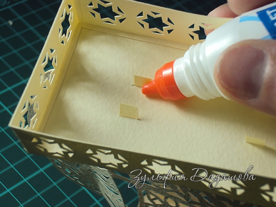 Приклейте на обратную сторону вырезанных деталей кусочки двухстороннего скотча на вспененной основе.