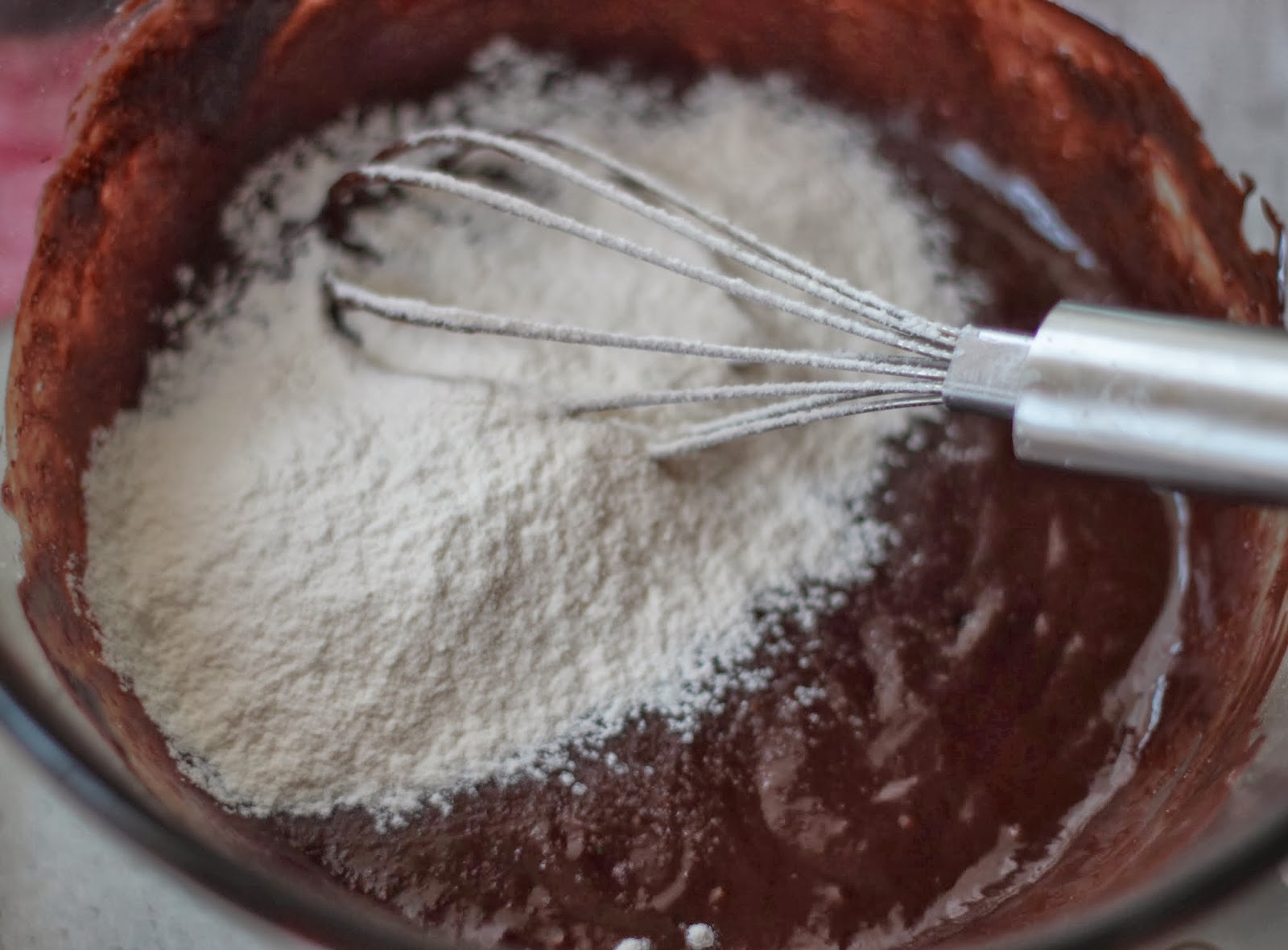 Ввести треть взбитых белков в шоколадную массу, затем тщательно вмешать снизу вверх остальные белки.