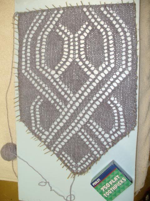 И ещё одно явление в блокировке: если шерсть мерсернизированная и плохо сваливается ( не держит форму)- то можно и подкрахмалить (только слабенько). Лучше всего наносить крахмальный раствор распылителем на влажную растянутую шаль.