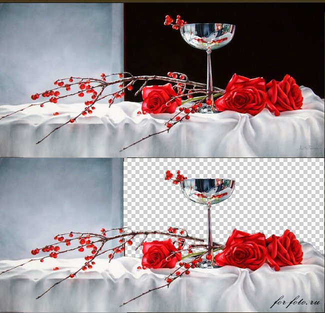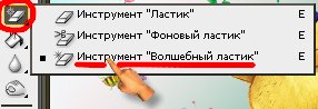 как видно вырез для фото залит белым цветом, вырезать лассо, замучаешься, применишь Волшебную палочку, могут быть рваные края, делаем так, на панели инструментов находим инструмент "ВОЛШЕБНЫЙ ЛАСТИК"