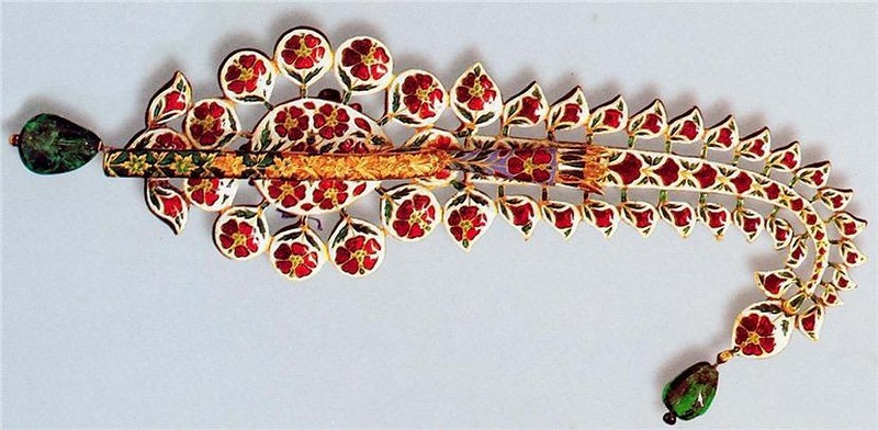 Заколки "сарпеч" вошли в моду еще во времена правления династии Великих Моголов. Сарпечи можно увидеть на старинных картинах, фотографиях, иллюстрациях. Так, махараджа Кашмира изображен в тюрбане с драгоценной брошью невероятной красоты, придерживающей пучок перьев райской птицы. Такие атрибуты внешности являлись характерными для всех правителей-раджпутов.