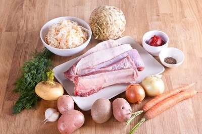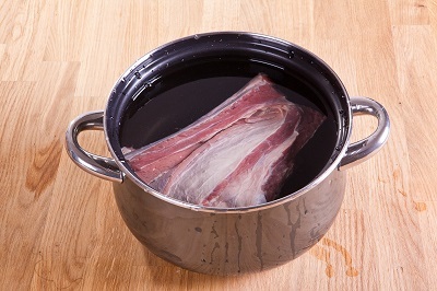 1. Мясо вымыть, залить 4 л холодной воды, довести до кипения, снять пену, положить 1 вымытую неочищенную луковицу, 1 вымытую и обжаренную на сковороде без масла морковь и варить 2 ч.