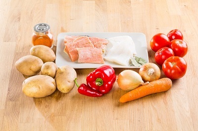 6. В бульон с картофелем добавить тушеные овощи, рыбное филе, посолить, поперчить и варить 5 мин.