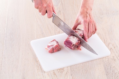 2. Баранину вымыть, разрубить на кусочки, сложить в кастрюлю, залить 4 л воды и довести до кипения. Пену снять, положить лавровый лист, очищенный корень петрушки, 1 стол. ложку соли и варить на маленьком огне 2 ч.
