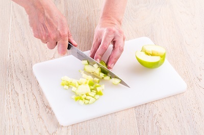 5. Яблоко вымыть, разрезать пополам, удалить сердцевину с семенами, мякоть нарезать кубиками. Чернослив промыть и вместе с яблоком добавить в бульон к мясу с овощами. Варить 5 мин.