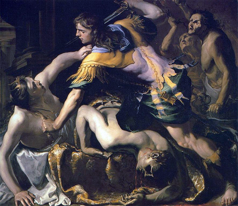 Бернардино Мэй. Орест убивает Эгисфа и Клитемнестру 1654