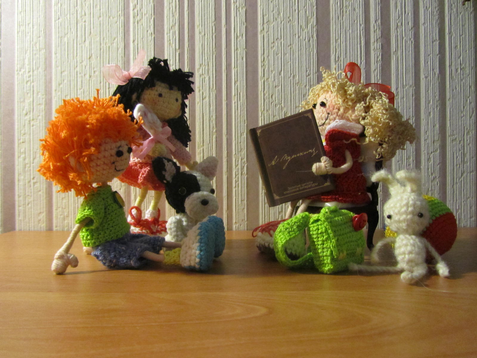 Такая вот получилась троица первоклашек. Уже с книжками, но еще с игрушками.