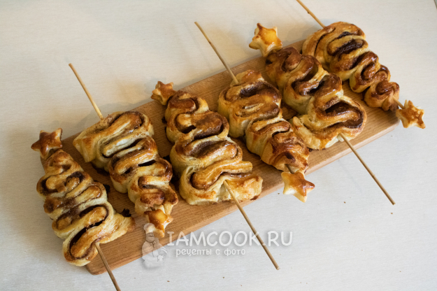 Готовые булочки остудите, а затем дополните каждую елочку звездой. С такой верхушкой они принимают по-настоящему праздничный вид!