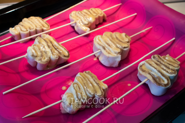 Духовку заранее разогрейте. Выпекайте при 180 градусах 12-15 минут. Изделия быстро зарумянятся.
