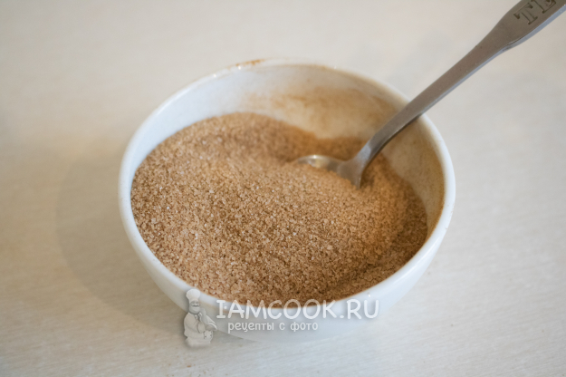 Пока тесто размораживается, смешайте и перемешайте сахар с корицей.