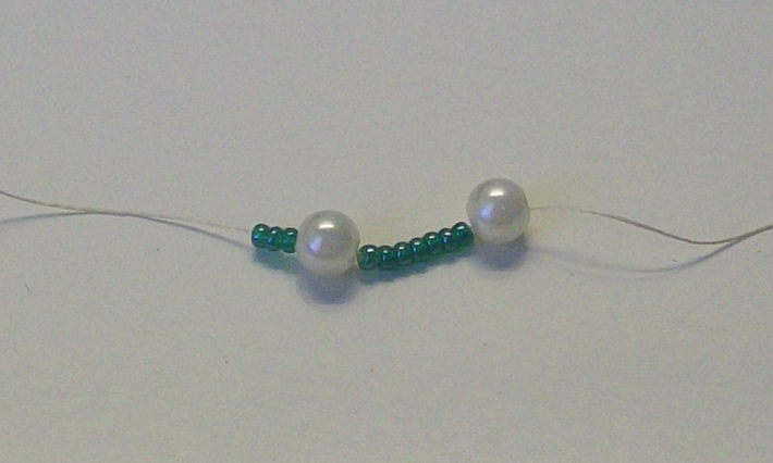 и пропускаем иглу через бисеринку, ближайшую к противоположной бусине.