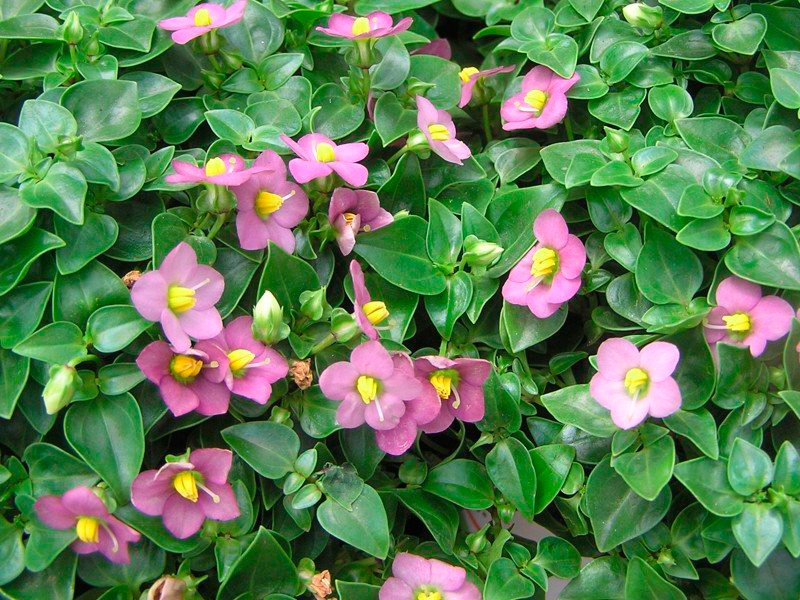 Зелень у экзакума насыщенного зеленого цвета, а сами цветки бывают разных оттенков в зависимости от сорта.
